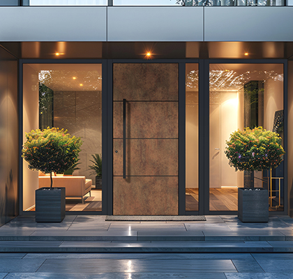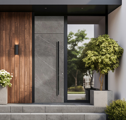 Cenimo delo človeških rok, ki izhaja iz strasti in tradicije več generacij. Naša najnovejša kolekcija vhodnih vrat Les & kamen ponuja edinstveno kombinacijo visokokakovostnih materialov, kot so les, stari les, keramika, kamen, laminat in črno emajlirano steklo, ki vaša vhodna vrata spremenijo v elegantna umetniška dela.