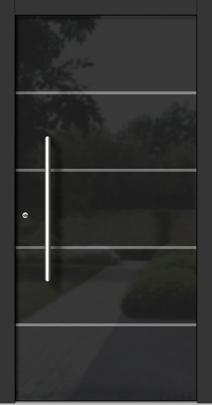 Naša kolekcija s površino poravnanimi emajliranimi stekli je namenjena vsem, ki si pri svojih vhodnih vratih želijo svojstven, umetniški stil. Emajlirano steklo črne barve obogati vsak model vhodnih vrat s skoraj tridimenzionalnim učinkom.
